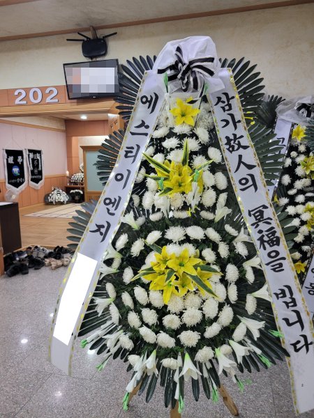 전북 고창 우리장례식장에 배송된 근조화환 또한 고인의 명복을 기리고,