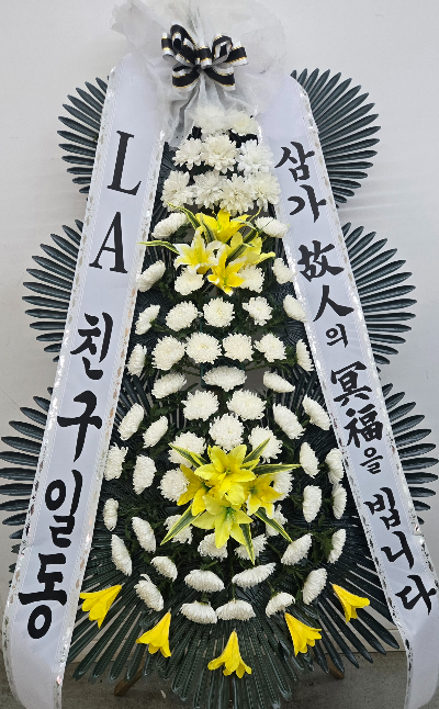 리본에는 “삼가 故人의 冥福을 빕니다” 문구를 넣어