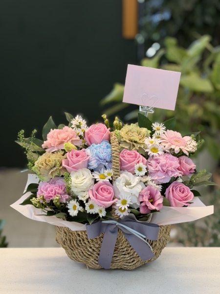 파스텔톤으로 가득 채운 생신 꽃바구니