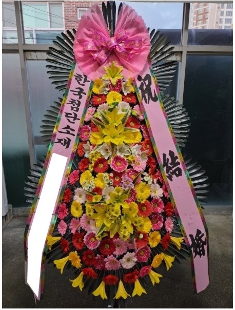 결혼식 축하화환은 예식 1시간 전에 배송되어 하객을 맞이합니다