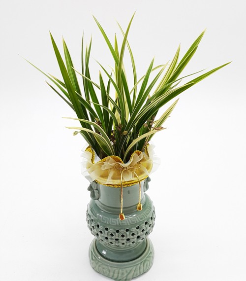 위에 사진은 금화산고급으로 청자 투각분에 식재한 상품입니다