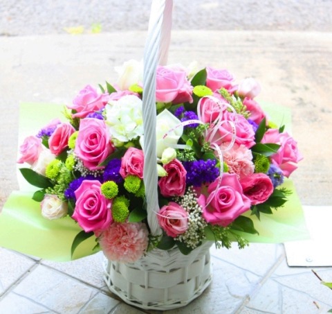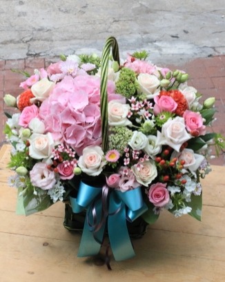 핑크톤의 혼합스타일 꽃바구니입니다