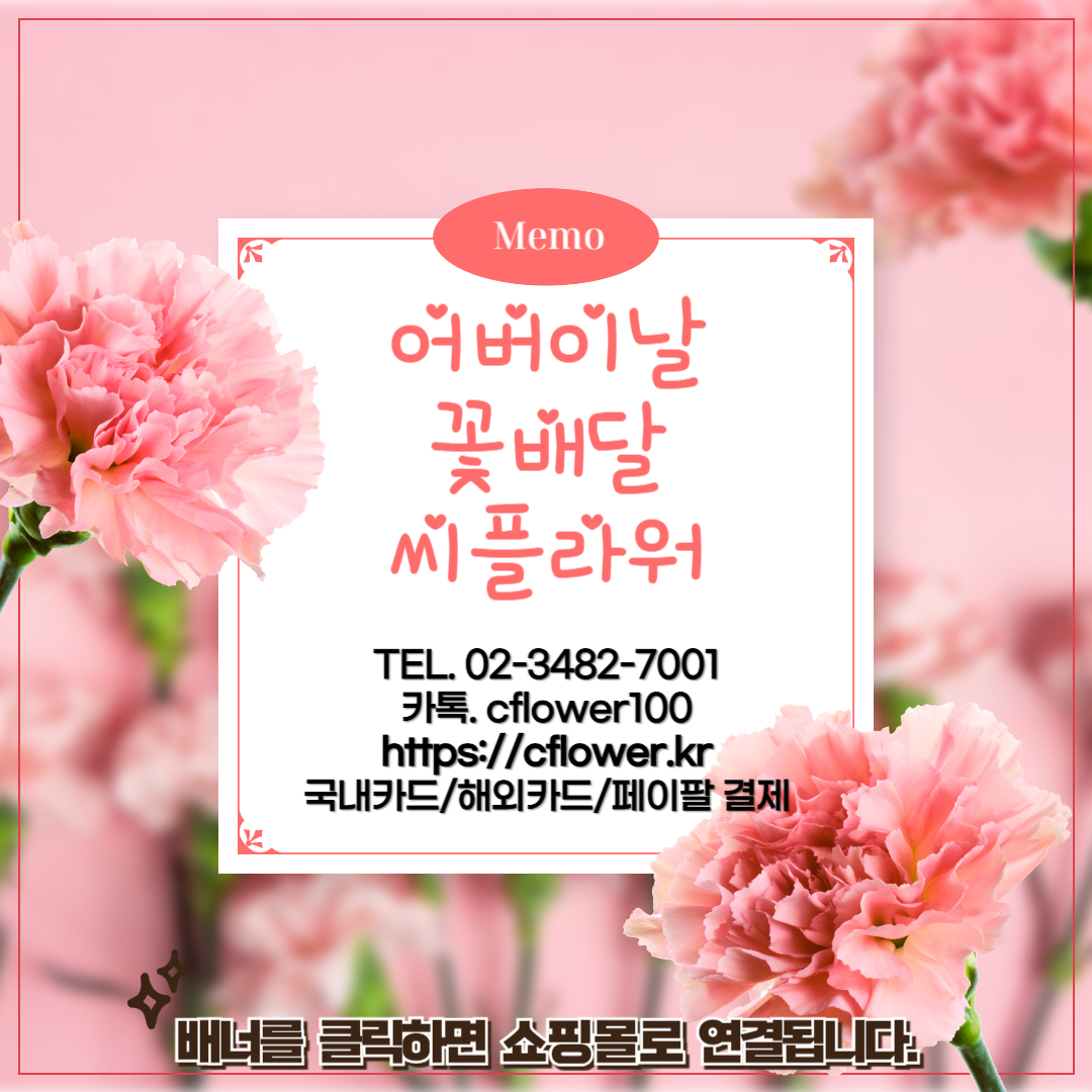 | 꽃배달 어버이날 카네이션 꽃바구니-해외카드/페이팔 결제,어버이날 문구/전국 카네이션 배송 (0) | 2024.04.17 |