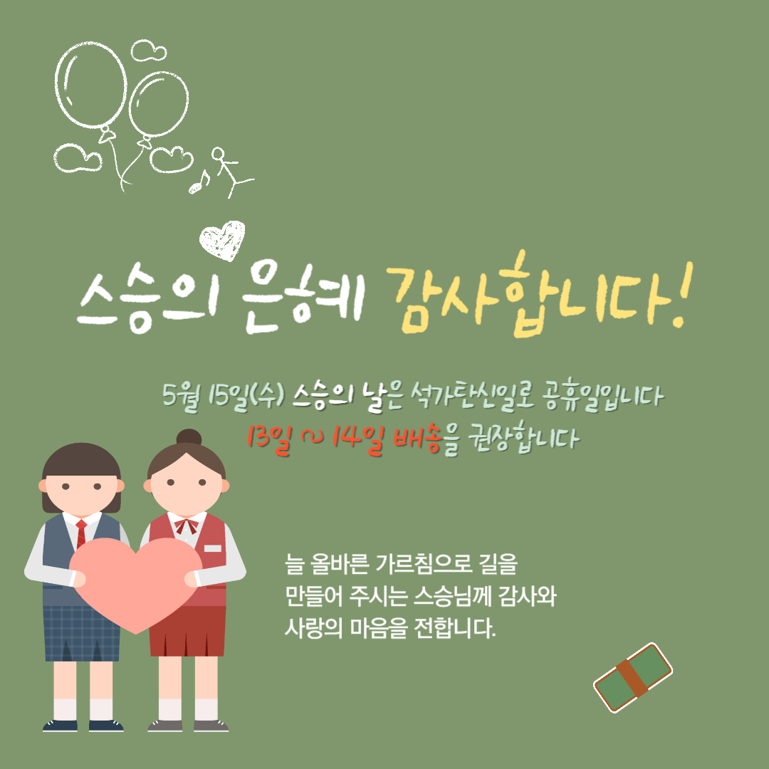 5월 15일(수) 스승의 날은 석가탄신일과 겹쳐
