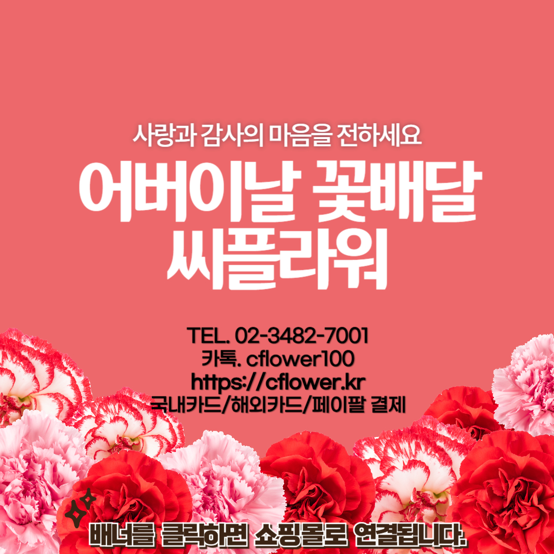 | 경북 어버이날 카네이션 꽃바구니 꽃배달 - 해외카드/ 페이팔 결제 (0) | 2024.05.14 |