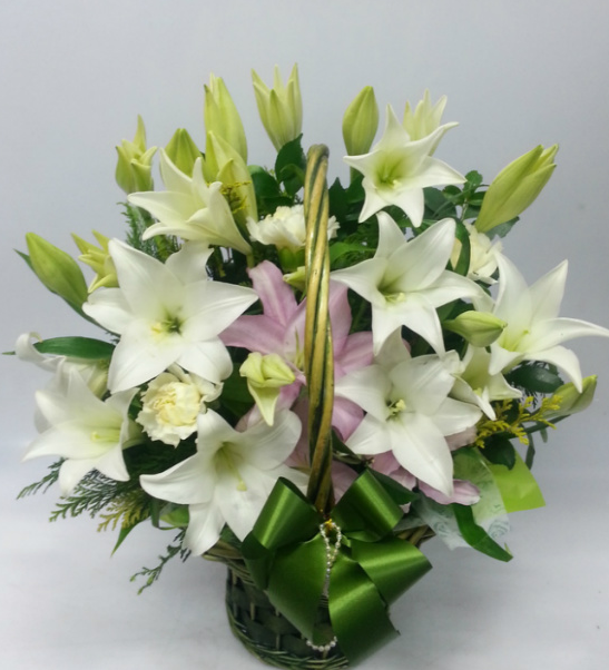흰색의 백합과 함께 포인트가 될수있는 핑크색 백합도 넣었습니다