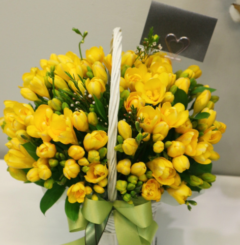 노란색의 후리지아는 달콤한 향기로 기념일을