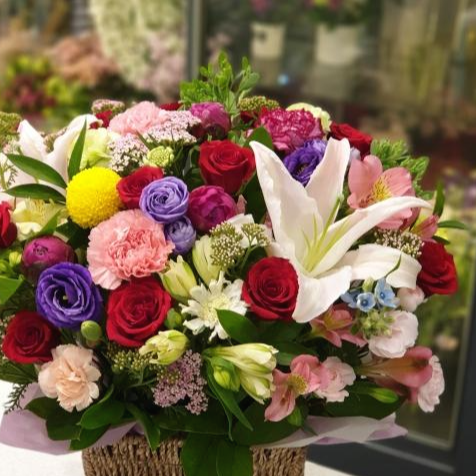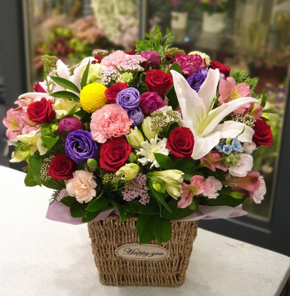 빨간장미가 들어간 꽃바구니가 제일 인기가 좋습니다