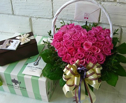 여자친구의 생일을 맞이해서 꽃바구니와 케익, 초콜렛을 주문해주셨어요
