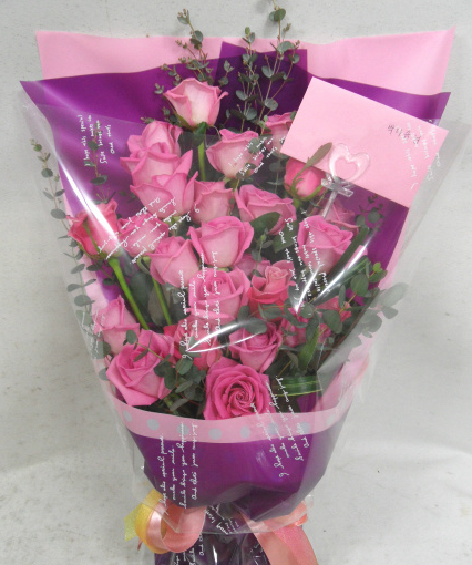 핑크장미로 제작된 꽃다발입니다