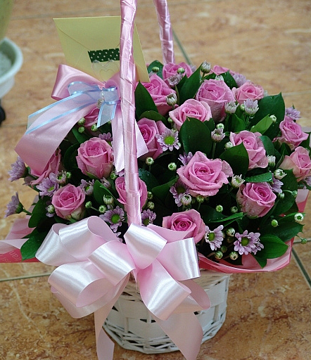 핑크장미와 소국이 들어간 예쁜 꽃바구니랍니다