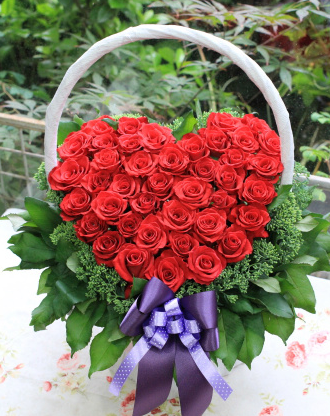아름다운 레드장미로 하트모양을 만든 사랑스러운 꽃바구니예요