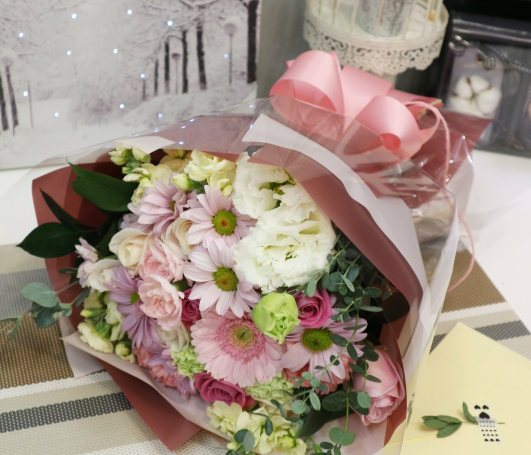 여자분들이 좋아하시는 파스텔 핑크톤의 꽃다발로