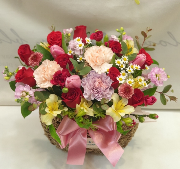 화사한 빨간장미와 생크림처럼 부드러운 느낌의 카네이션을
