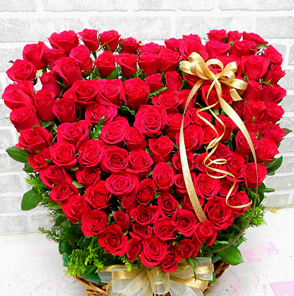 사랑하는 사람에게 레드장미100송이로 하트모양을 만든 정열적인 꽃바구니예요