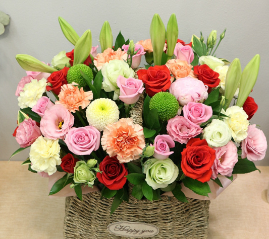 레드컬러가 들어간 스타일의 꽃바구니가 좋아요