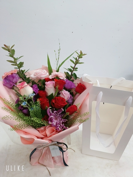 빨간 장미와 핑크 장미, 리시안셔서, 그린소재와 함께