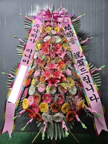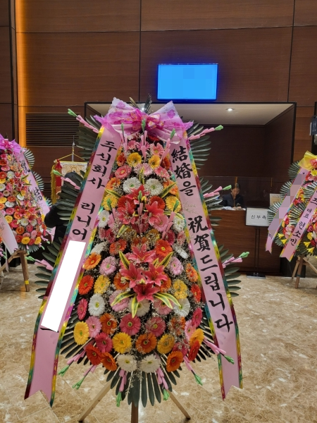 호텔ICC웨딩홀로 배송된 결혼식 축하화환입니다.