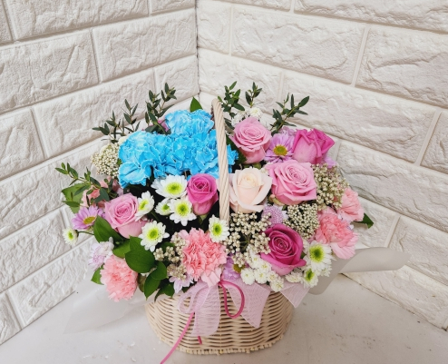 수국 혼합 꽃바구니를 주문 주셨는데요